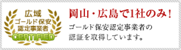 岡山・広島で一社のみの広域ゴールド保安認定事業者